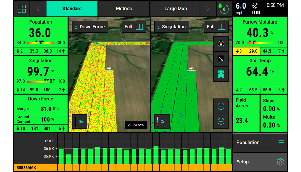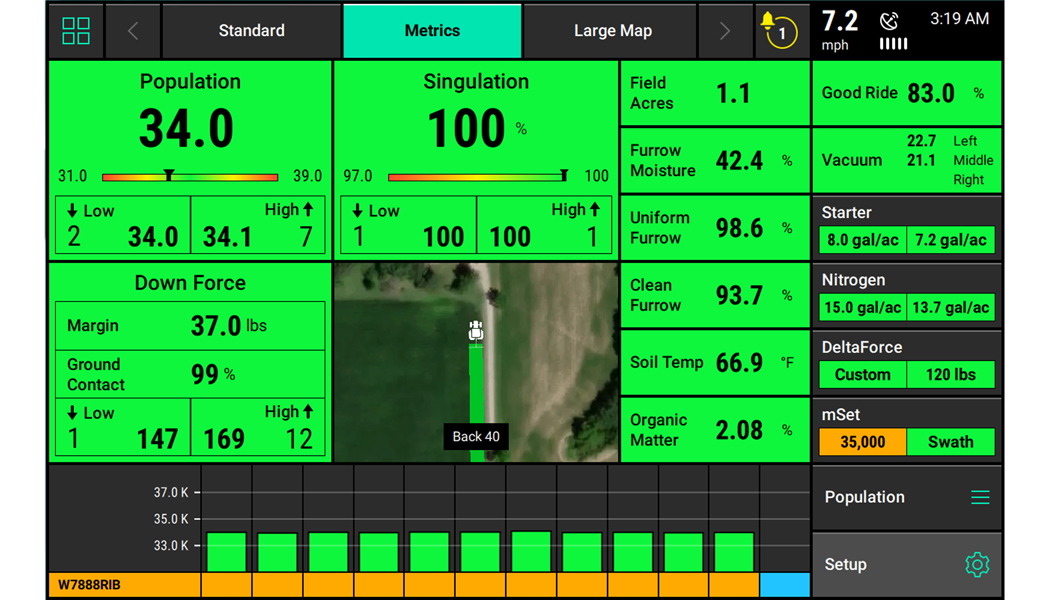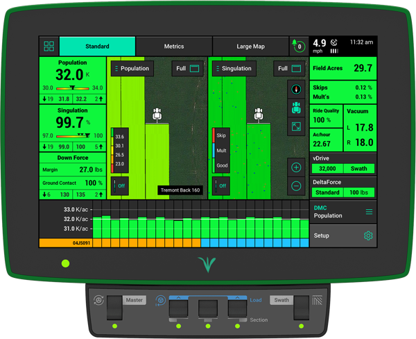 20|20 can be utilized as a monitor to help you simply set the planter to maximize planter perfomance in each crop, each day of planting. That same 20|20 also powers the most agronomically advanced systems on the market that control population, down force, liquid, multi-hybrid planting and high speed planting, all while sensing the furrow. 20|20 does all this and more to allow you to not only have the accurate data to make those crucial decisions, but also gives your equipment the powerful automation to make decisions as it passes through the field, optimizing every pass.
