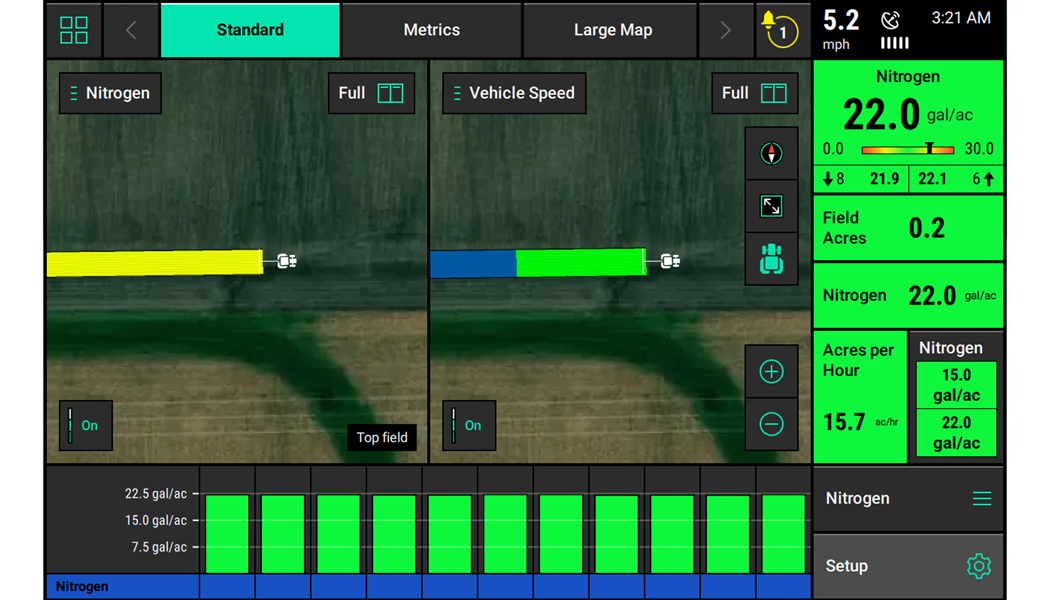 Utilize 20|20 on the sidedress bar to capture rate by row, and pair it with vApplyHD to control the rate on each knife. The same display provides you with the clearest agronomic picture available to take your liquid sidedress pass to the next level with real-time row-by-row rate monitoring and control.